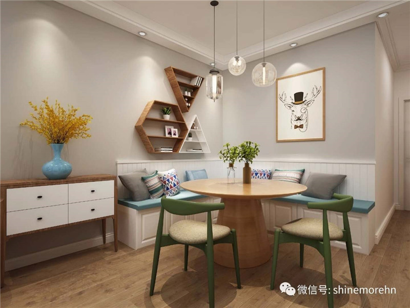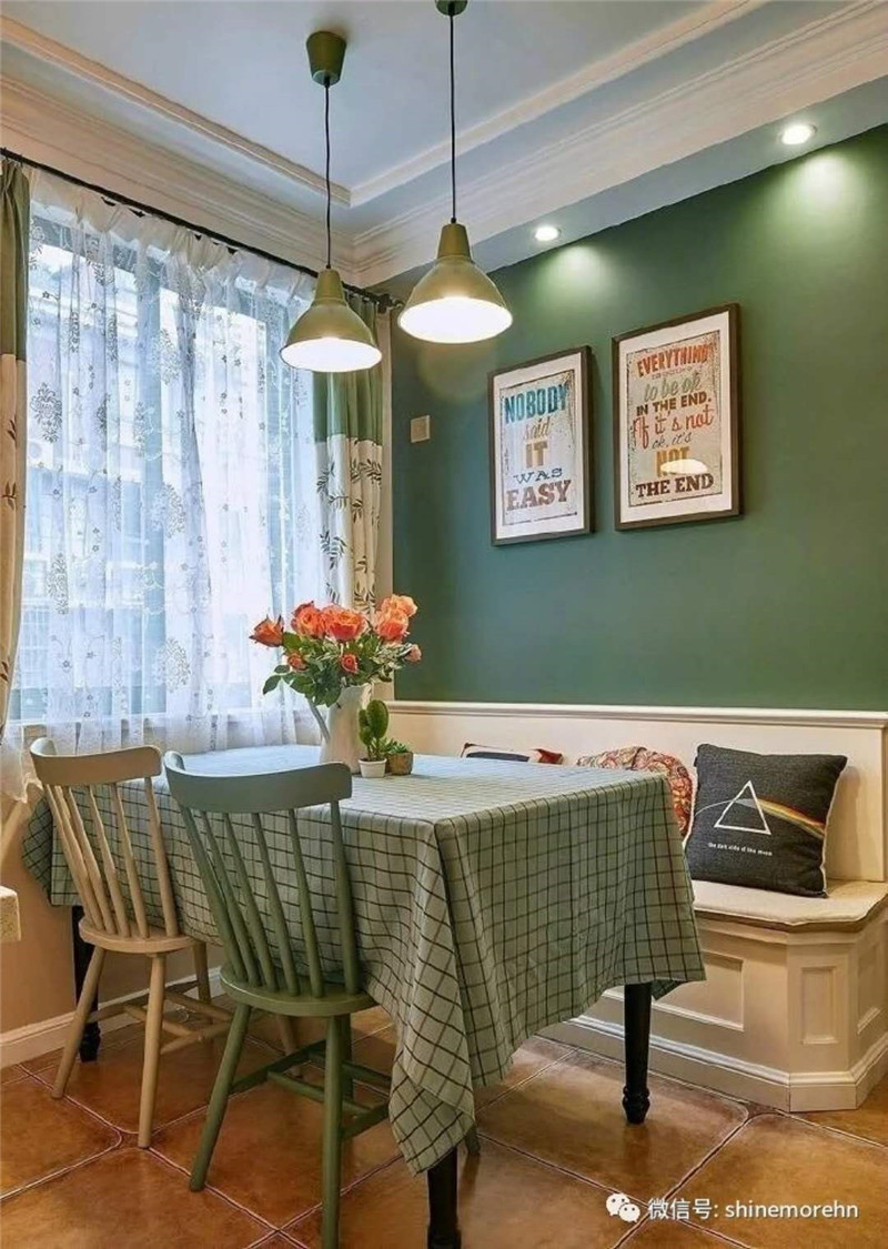 木質餐桌更有質感,同色系卡座互相協調,簡約不簡單。