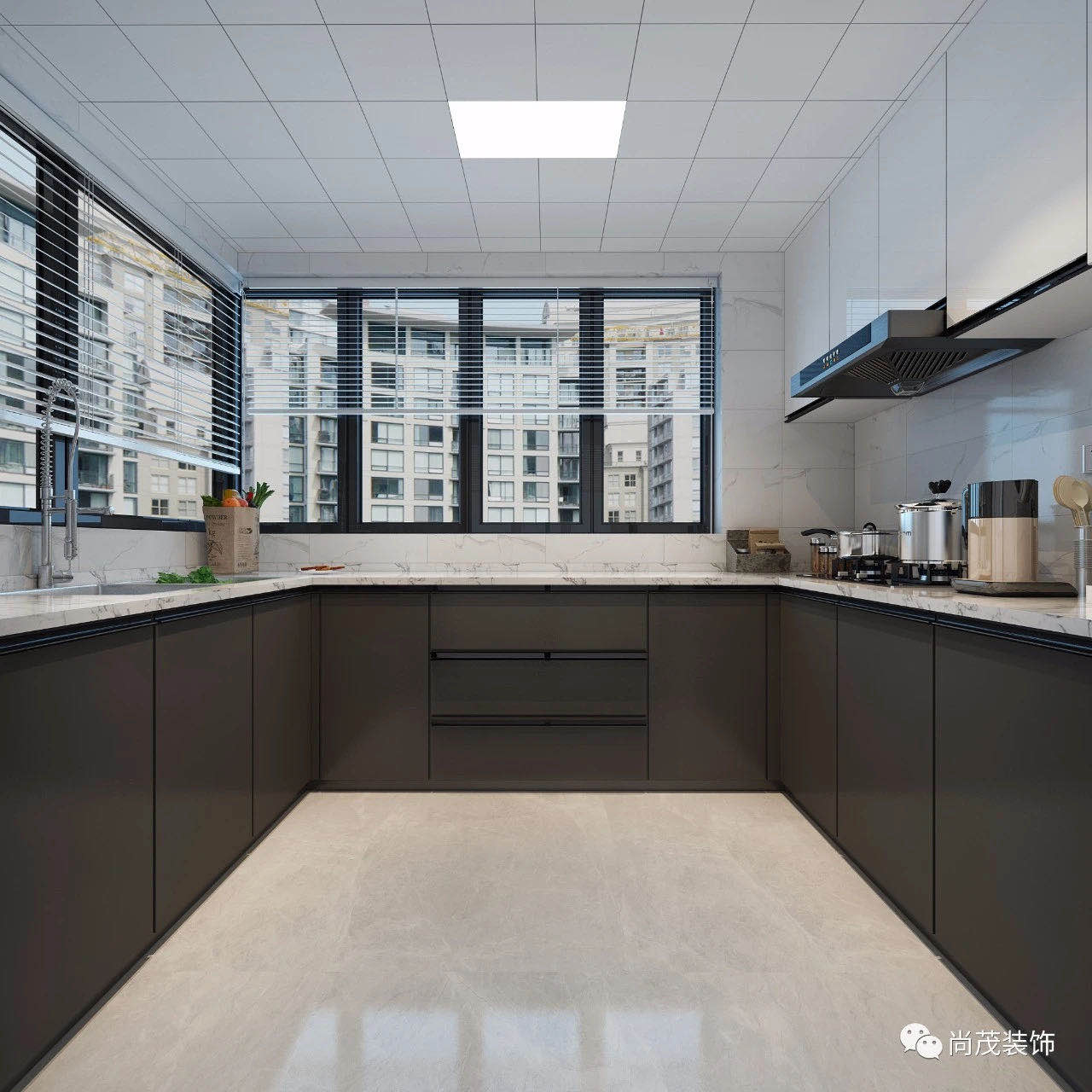 廚房的地柜采用的是高光烤漆柜門來做的,使整個廚房更加亮麗大方,臺面和柜體有著很明顯的區(qū)分,這樣整個廚房更加有質(zhì)感。
