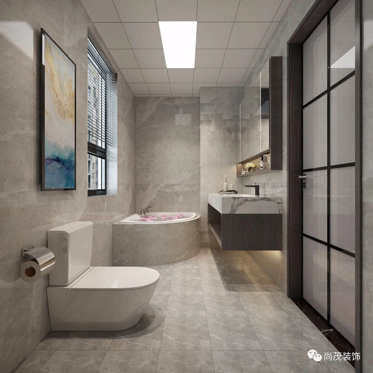 運用石材的紋理進(jìn)行貫通,半圓型的浴缸更是增加了空間的舒適度,也使整個空間產(chǎn)生了流動感。。