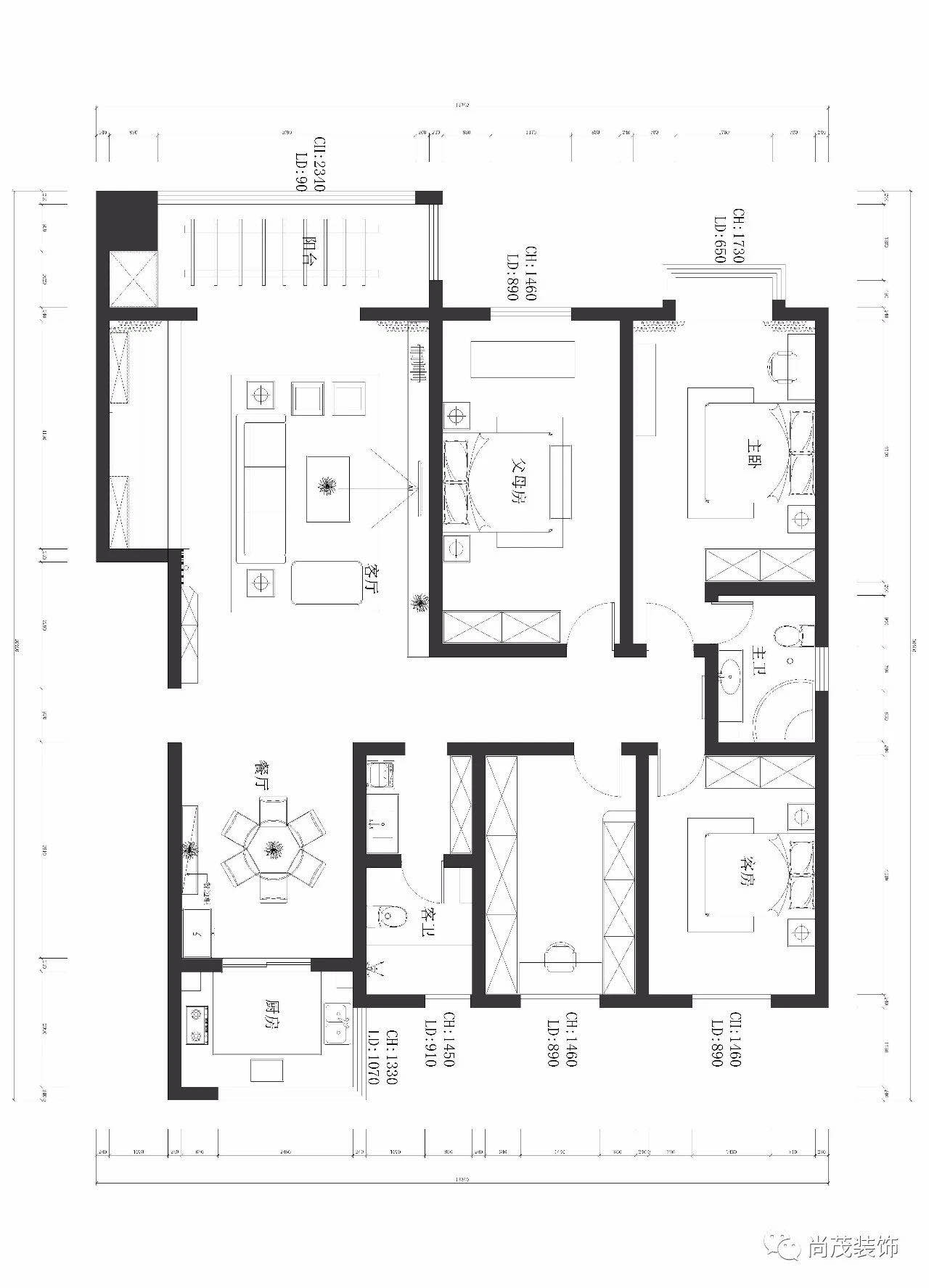 房子屬于南北通透的戶型,采光和通風(fēng)效果都比較好,客餐廳面積比較大,所以在考慮方案的時候,融入了一些造型的設(shè)計來弱化客餐廳的空曠感。