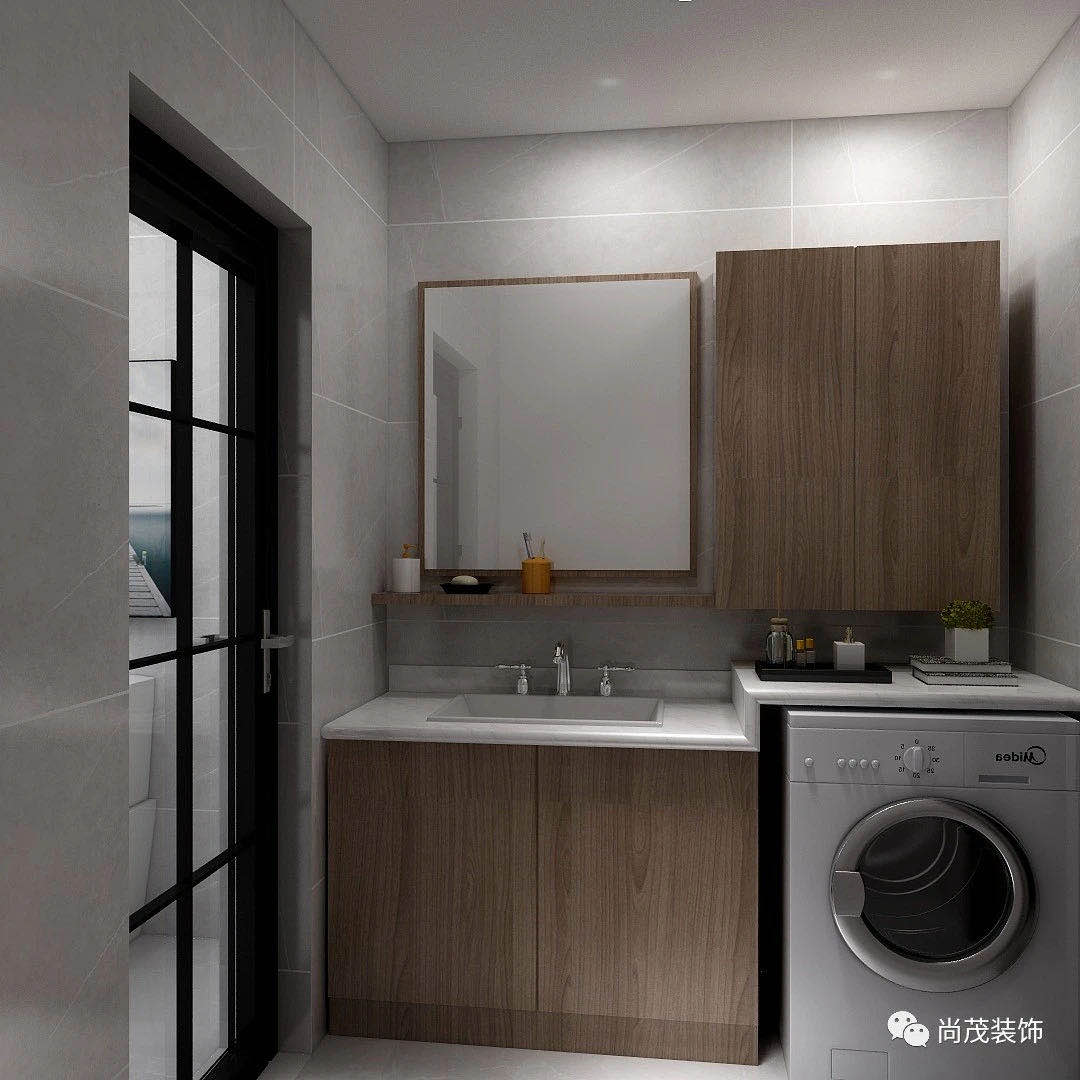 木質(zhì)的浴室柜和洗衣機做了整體的結(jié)合,不但空間規(guī)整,也最大程度的增加了空間的利用感。
