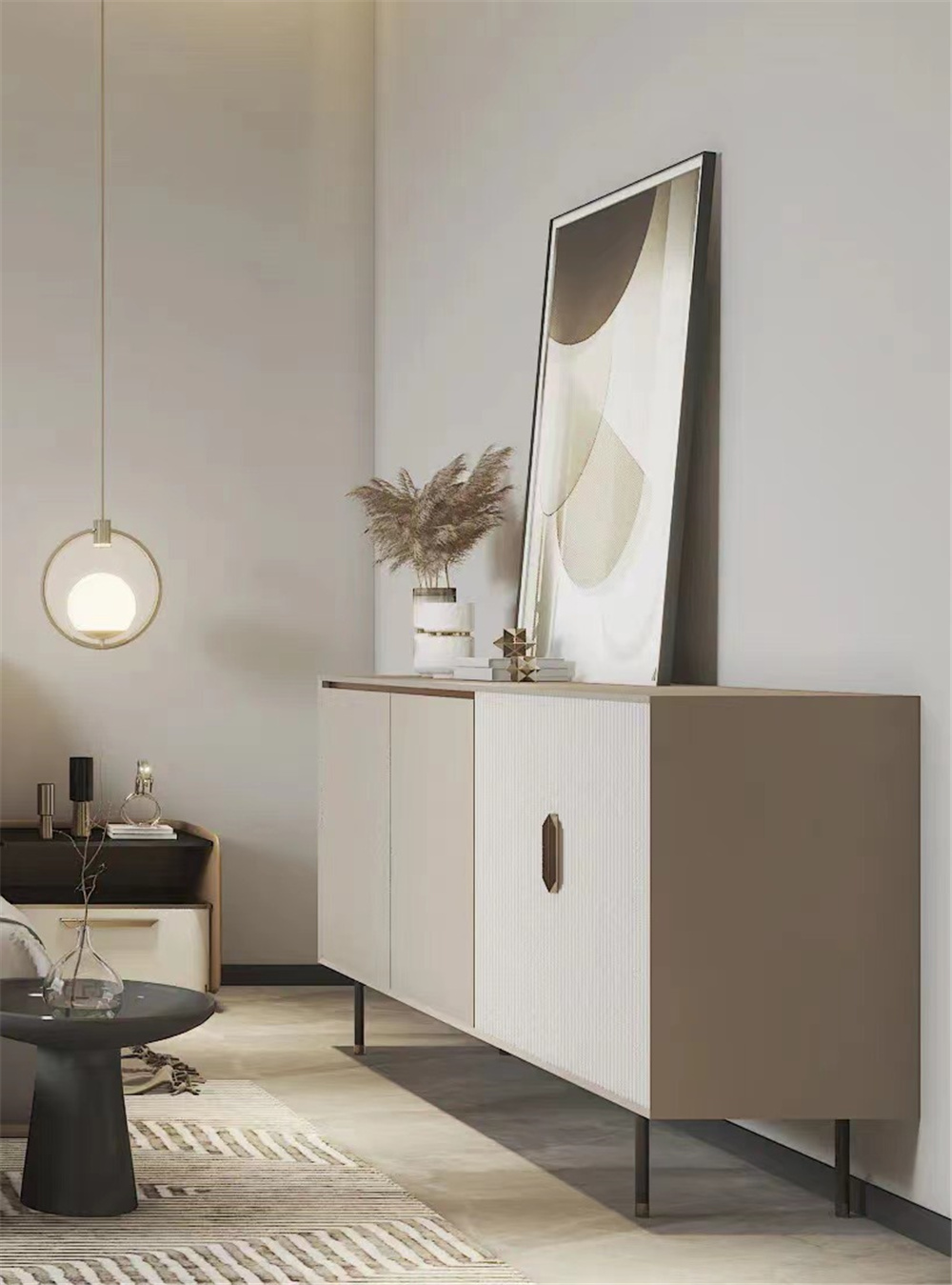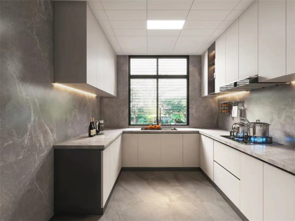 葷素百味,煙火人間。一家人用餐氛圍突出輕松愉悅,中廚在功能區域細分,"U"字型的設計更加有效利用空間,日常使用起來更加方便和人性,餐廳備餐區一整面墻的備餐柜,將一些廚房用品及烘焙用具全都收納進了柜體,酒柜用玻璃材質的柜門加上氛圍燈光區分開了其他柜體,整體和諧簡練,儀式感、氛圍感拉滿。