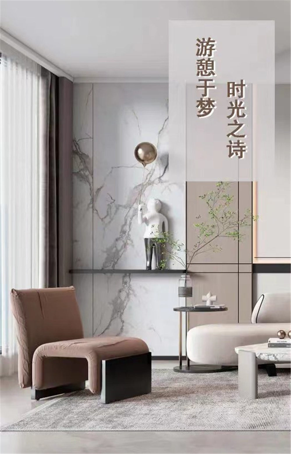 Soft outfit is equipped with leather cloth sofa, light luxury metal marble tea table, artistic lamp, as well as emerald leisure chair ornament, each place is exquisite luxury.