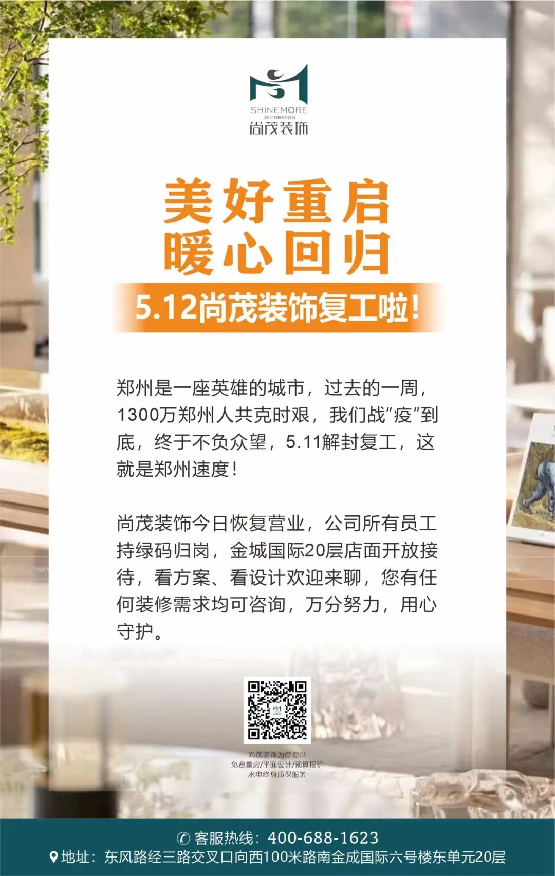 美好重啟,暖心回歸,5.12尚茂裝飾復工啦!