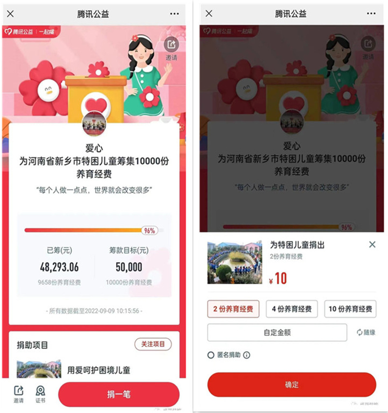 贈人玫瑰,手留余香。獻出一份愛心,托起一份希望。為籌募善款用以解決孩子們的生活、教育、醫療、探視、生活用電、冬季取暖等項費用,經河南省慈善總會審查,并報請騰訊公益立項,特發起了“99公益日·用愛呵護困境兒童”的樂捐活動,面向社會各界愛心人士籌集善款。 讓我們從心出發,奉獻一份愛,撐起一片天,呵護太陽花,溫暖太陽村。 如何參與捐贈項目 個人捐款攻略 第一步:先掃描二維碼,進入騰訊公益界面。點擊“確認授權”進入捐款頁面;