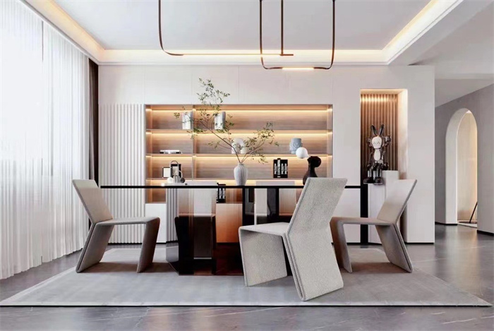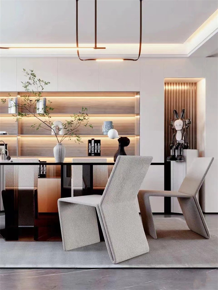 The sitting room abandons unnecessary element, the light luxury that pursues vogue feels and contemporary concise model. Compared with the traditional style, modern light luxury reflects the atmosphere created by space and furniture with the most straightforward decoration language, and then endows the space with personality and tranquility.