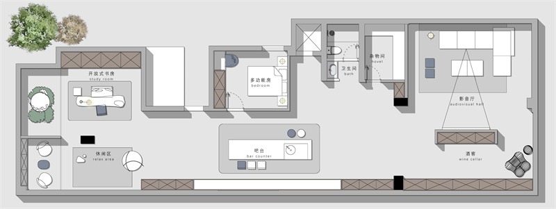 影音室是家里的很重要的空間,專業的吸音材料、燈光的氛圍、舒適的沙發讓主人在觀看電影時感到更加的放松和舒適。