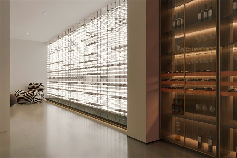 酒窖的設計延續現代風格的設計,大量的玻璃以及金屬的運用提高了視覺效果,酒窖的設計不僅體現家庭主人的愛好,更凸顯了業主對生活品質的追求。