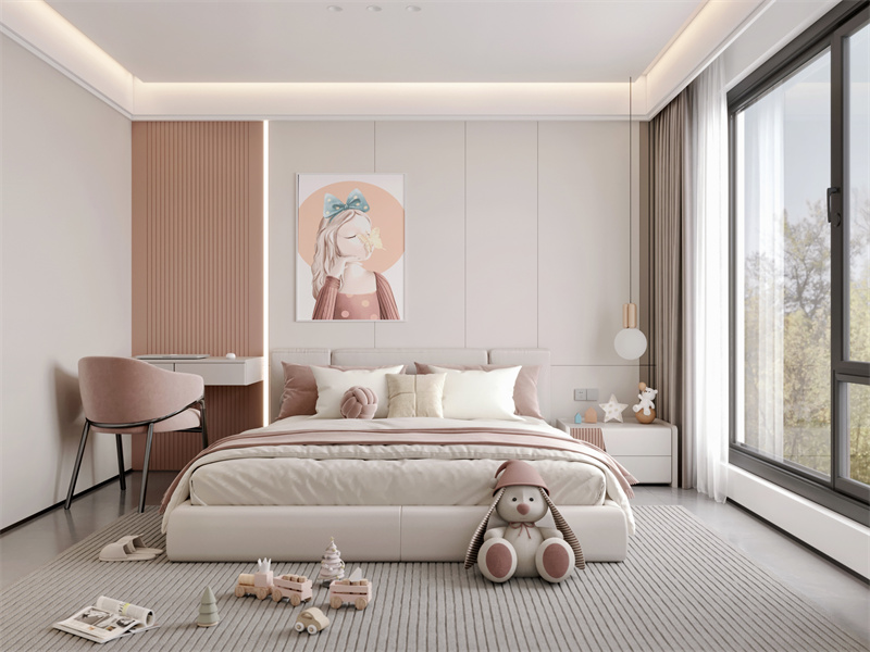 從整體的配飾來看,小公主的年齡還比較小,設計師遵循“以人為本”的設計理念,從色彩出發,空出盡可能多的玩耍空間,每個童年都是獨一無二的,希望她每天都會有一個好夢!