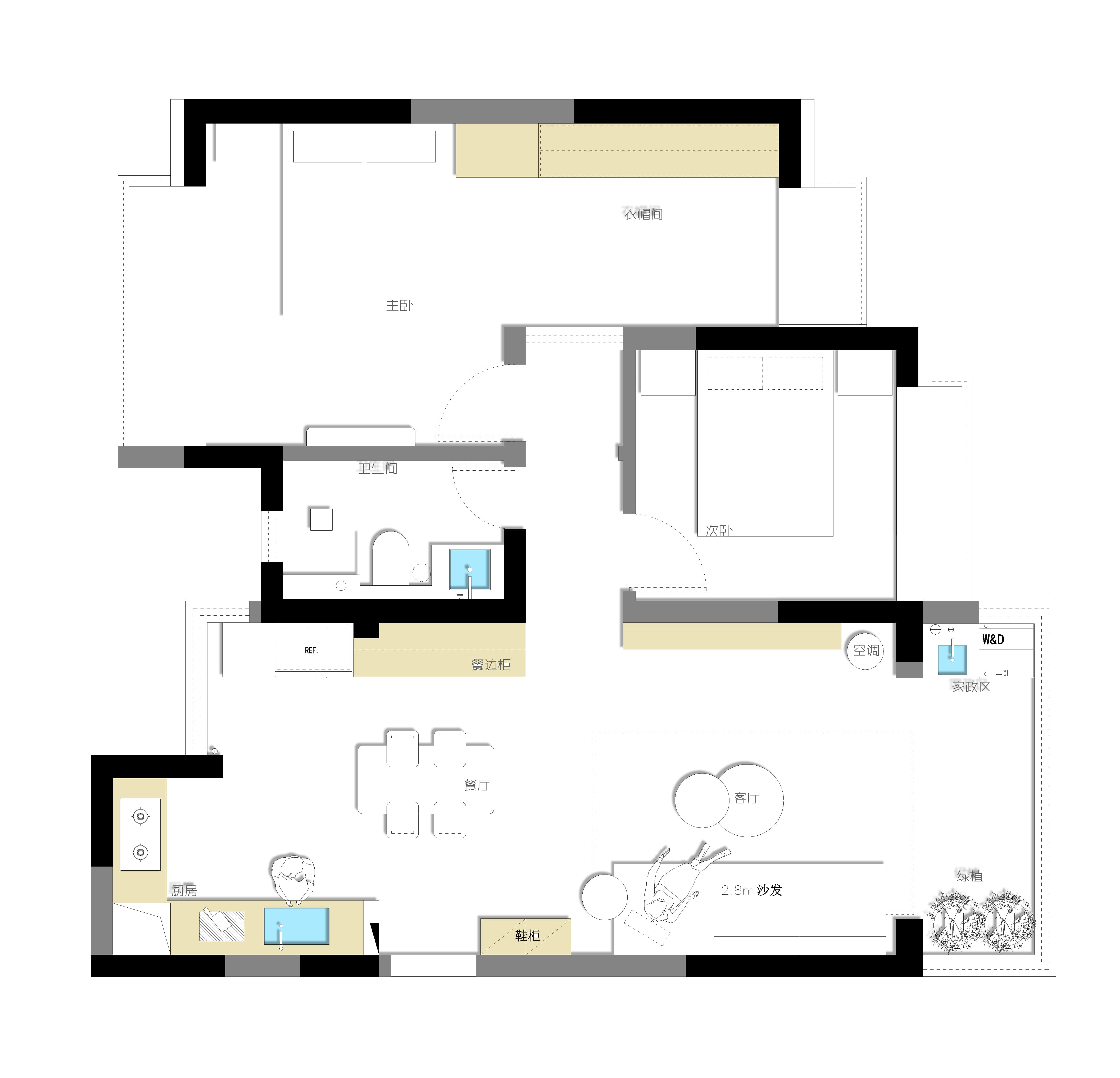 設計理念:簡單生活的居住要求越來越被現代人所追求和向往。將設計的元素、色彩、照明、原材料簡化到少的程度,但同時又對色彩、材料的質感賦予高要求。通過這種含蓄的空間設計,從而達到以少勝多、以簡勝繁的效果。