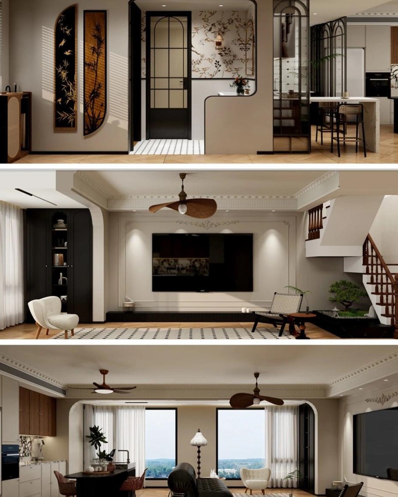 2024年奶油風盛行,以奶白色為主調,搭配柔軟材質,營造出溫馨、柔和、甜美的空間氛圍,給人溫暖治愈的視覺感受 ,滿足人們對家溫馨舒適的向往。而2025年,風格更加多元融合。比如輕法式在保留法式優雅元素的同時簡化裝飾,融入現代簡約線條,塑造浪漫、精致且清新的氛圍 ;新中式在傳統中式元素與現代設計手法的融合上更加深入,空間布局對稱,家具古樸典雅,盡顯東方文化底蘊與時尚韻味。 二、空間布局:注重靈活開放與功能細分